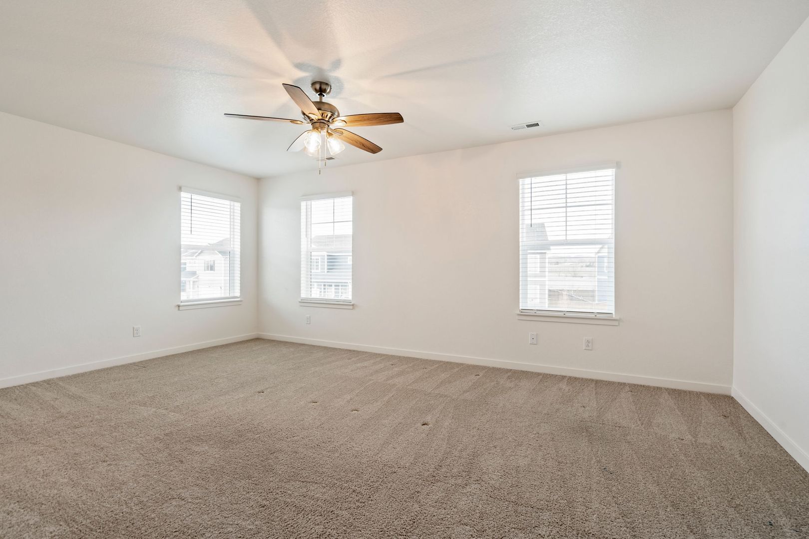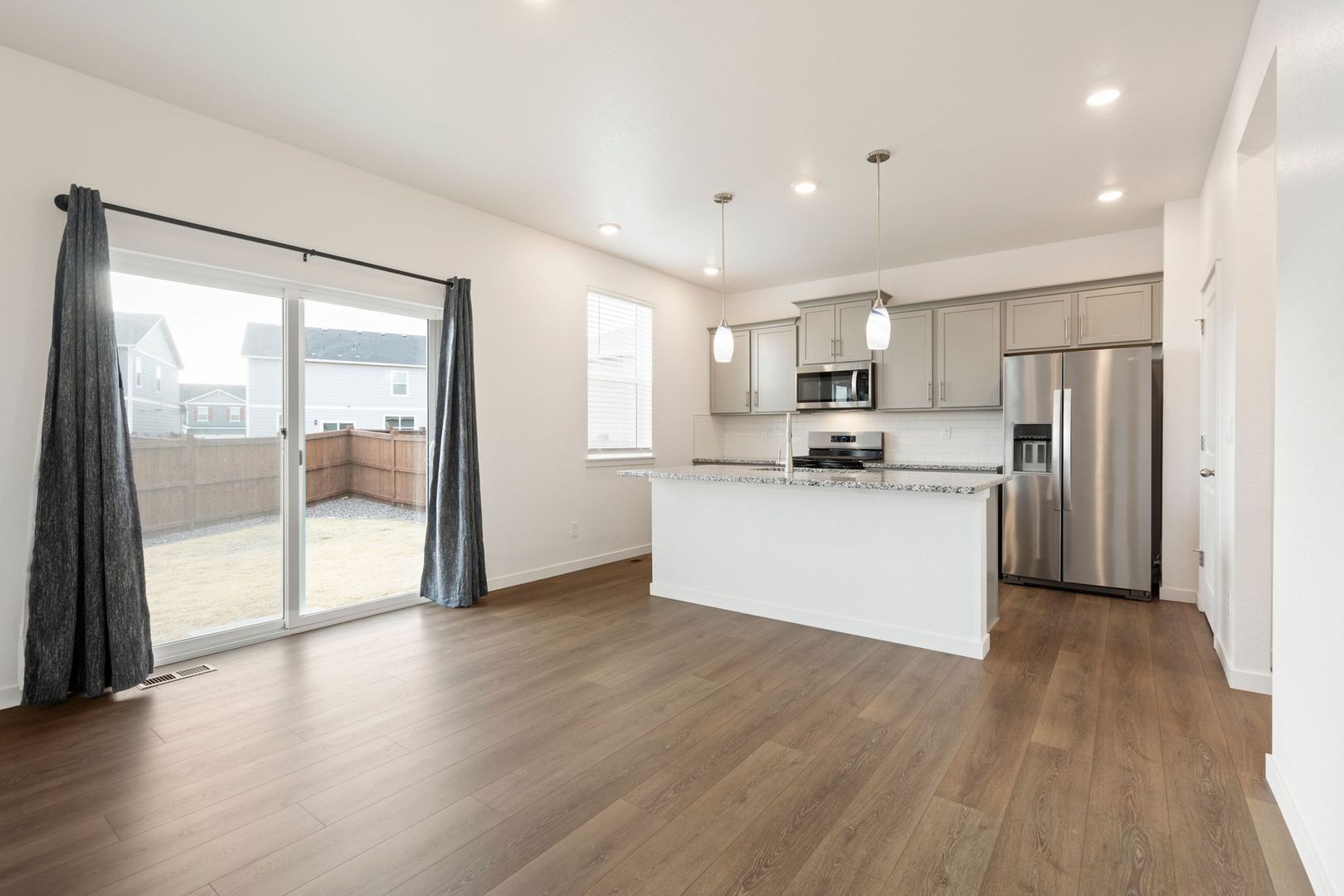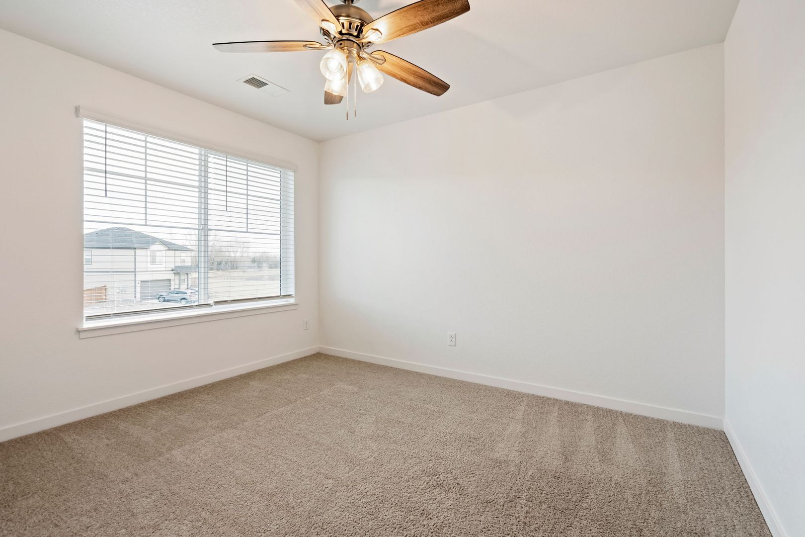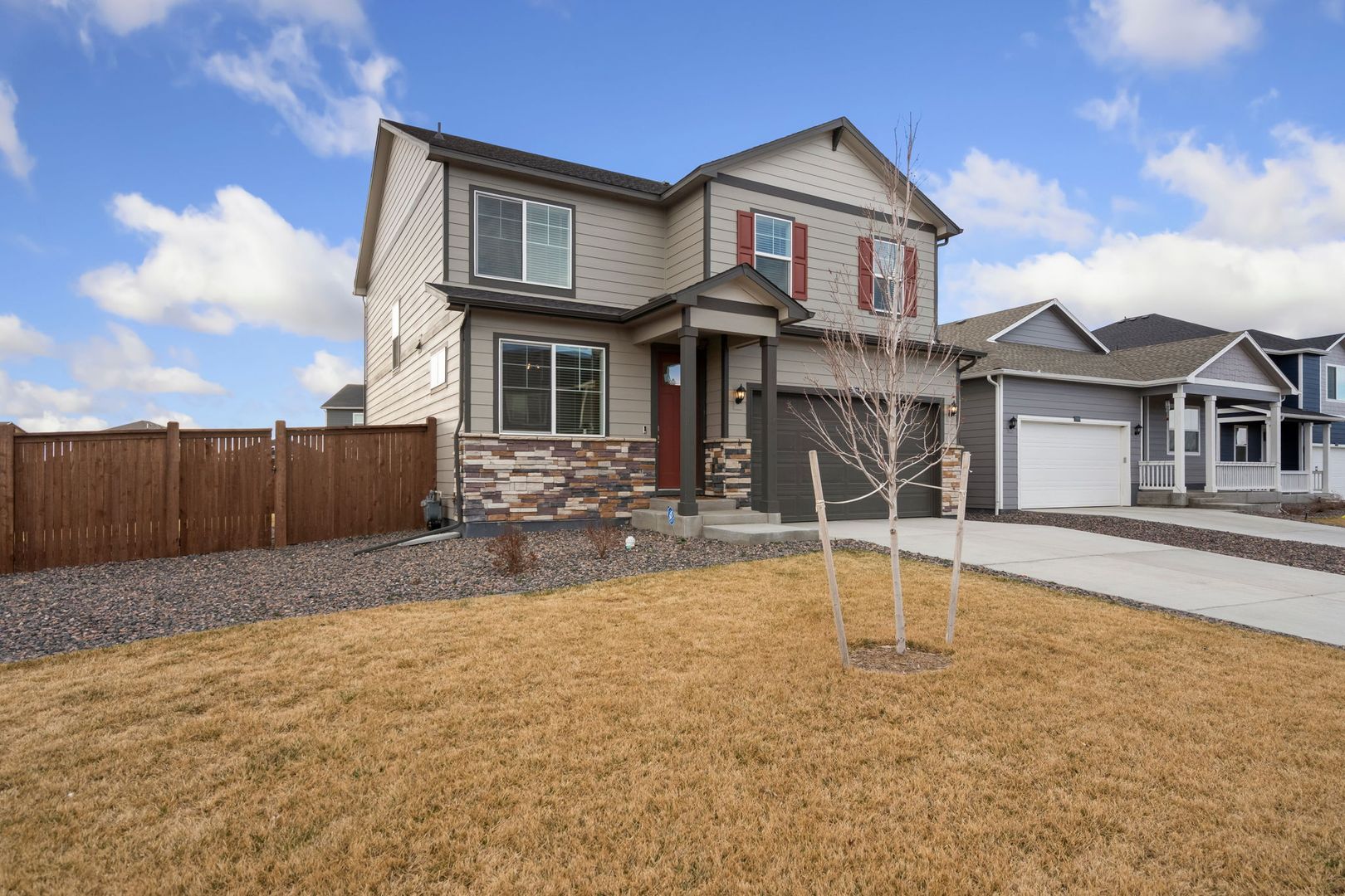 Located on the edge of Windsor and Fort Collins, this 4-bedroom, 2.5-bath home offers modern, low-maintenance living on a corner lot. The main floor office/study is bright and open. The kitchen features a gas range, stainless steel appliances and a corner pantry. Low-maintenance LVP flooring flows through the main areas, while double-pane windows, tankless water heater, and and a high-efficiency furnace add convenience and enhance comfort and energy performance. A private primary suite upstairs provides a retreat with a private bathroom and walk-in closet, and three more upstairs bedrooms, the laundry room, and full bathroom finish out the upper floor. The fully fenced yard with sprinkler system is spacious, and the 2-car attached garage provides parking and storage.