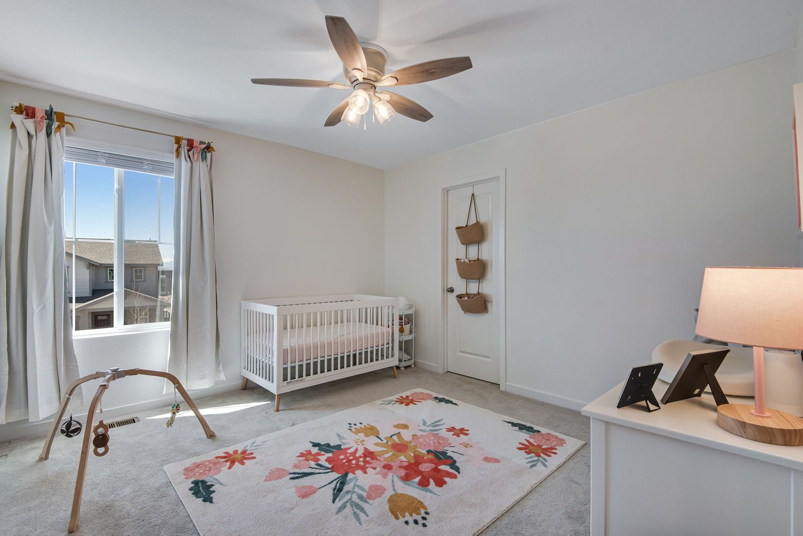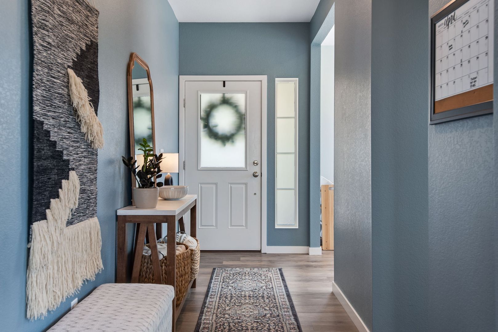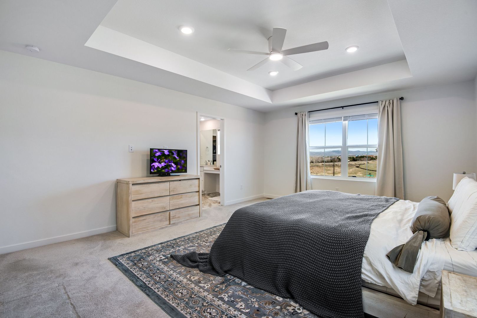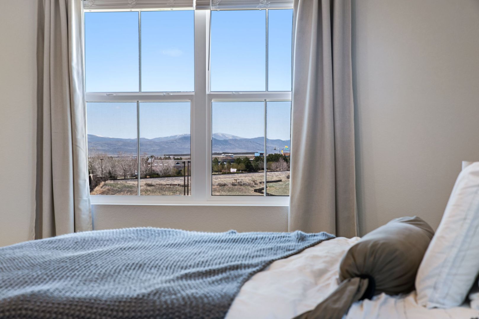 Immaculate 2-story home built in 2023. Situated on a corner lot this 4bed, 3bath gem offers 2,371SF of finished living space with an unfinished basement & oversized 2 car garage! Step inside to discover an inviting open-concept floor plan enhanced by 9-foot ceilings & abundant natural light, creating an atmosphere of spaciousness & warmth. The heart of the home is the stunning white modern kitchen, equipped w/all appliances & huge kitchen island, pantry w/custom cabinetry, & pendant lights that illuminate the space w/style. Entertain effortlessly in the adjacent dining area or unwind in the cozy living room. Escape to the second floor, where you'll find four generously sized bedrooms, including a luxurious primary suite with coffered ceiling, a remote fan & breathtaking views of Longs Peak. Pamper yourself in the attached primary bath, boasting a double vanity & shower w/seat, while a convenient laundry area adds to the ease of everyday living. Backyard is fenced & fully landscaped with views of the Front Range. The modest lawn in the front & xeriscaping around the side ensure low-maintenance living without compromising beauty. Additional highlights of this exceptional home include luxury vinyl flooring throughout main level, an active radon system, a foyer with a storage closet, and a home automation system that connects to Ring for added security & convenience. Kinston offers a vibrant community atmosphere w/pocket parks, future plans for pool & school located nearby. The Kinston Hub is a stone's throw away & features coffee, drinks & food.