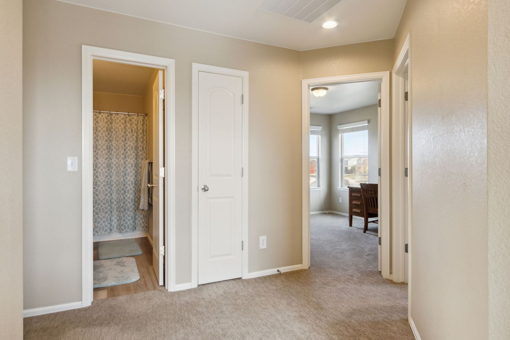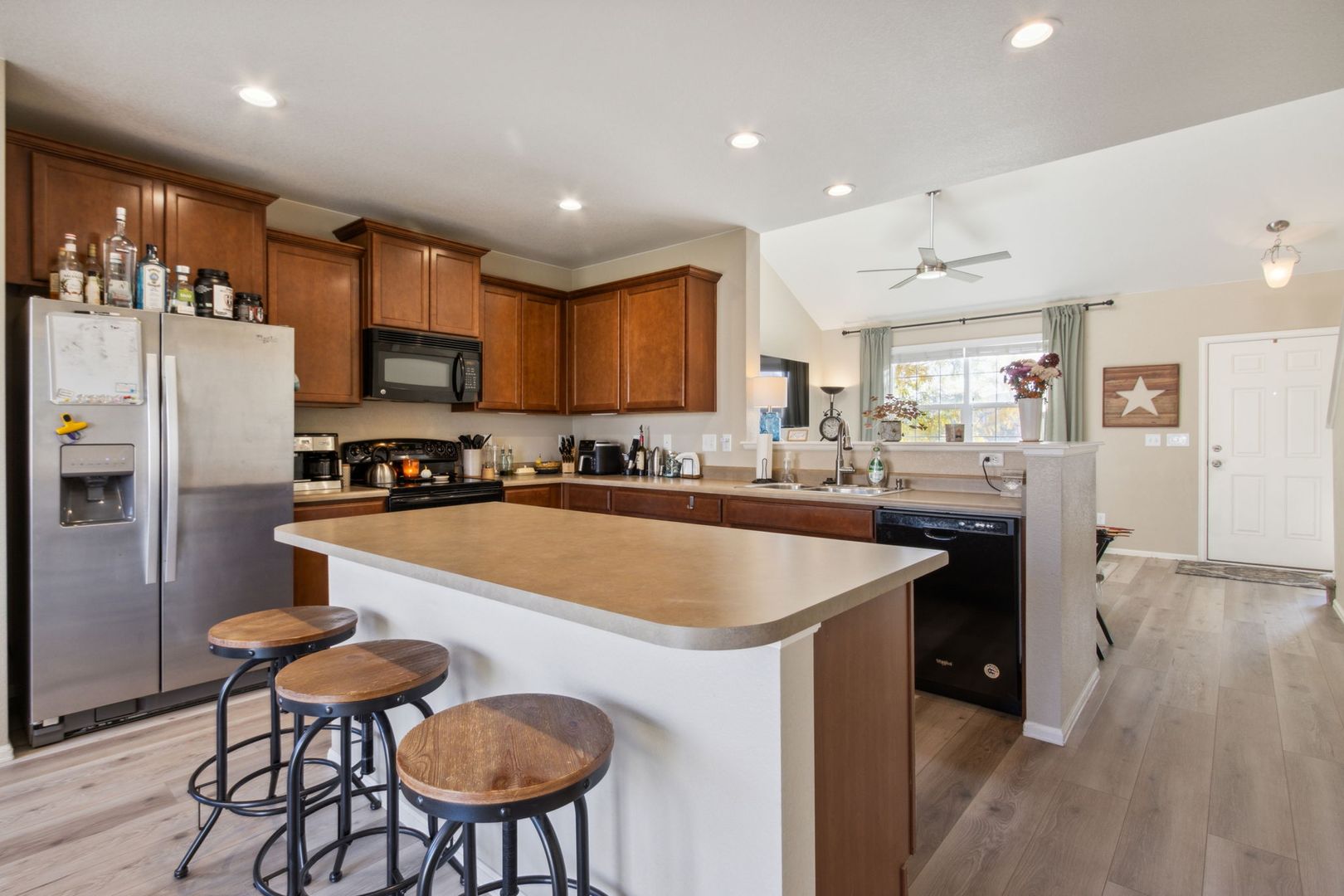 Inside there is new LVP flooring and updated carpet, modern paint, and well-maintained fixtures. The main floor features a living room and open kitchen with great natural light. Upstairs are three bedrooms including a spacious primary bedroom suite. The unfished basement offer room for storage and easy access to changing the furnace filter for the central heat and AC.